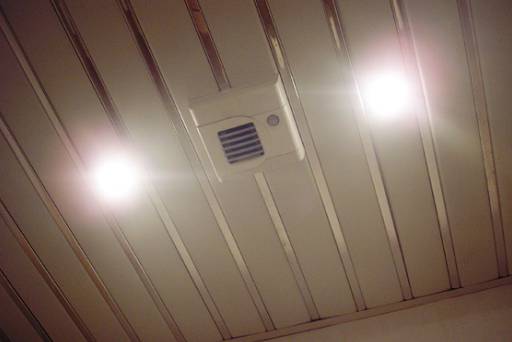 Установленное в санузле вытяжное устройство BXS с датчиком присутствия. Датчик присутствия позволяет активировать пиковый режим расхода воздуха.