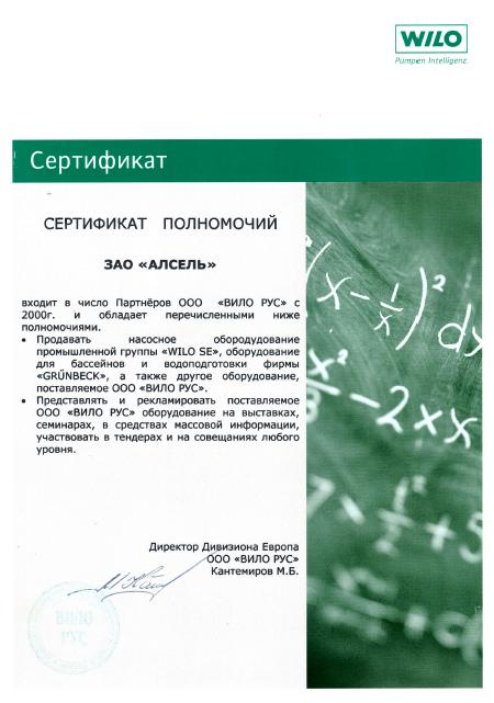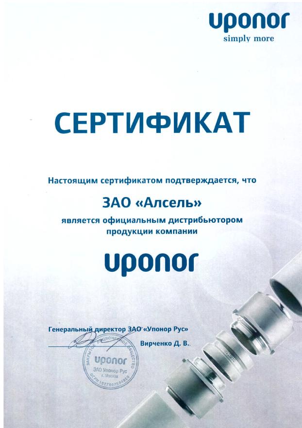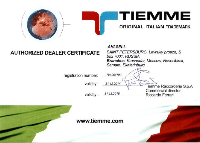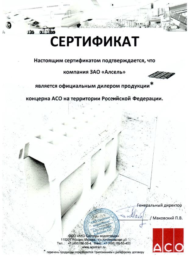 Сертификат официального дилера продукции концерна АСО на территории РФ