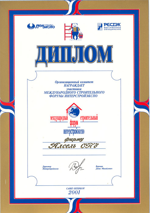 Диплом участника международного строительного форума «Интерстройэкспо 2001»