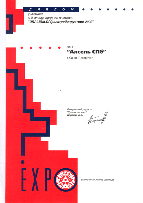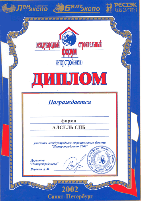 Диплом участника международного строительного форума «Интерстройэкспо 2002»