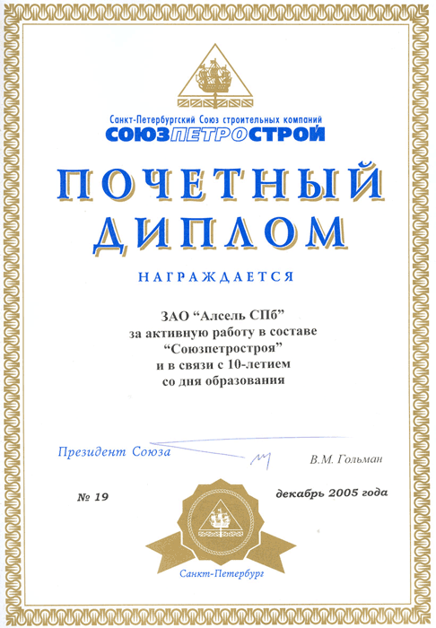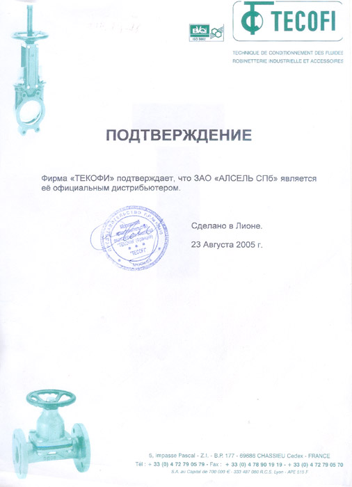 Лицензии и сертификаты компании Алсель Санкт-Петербург