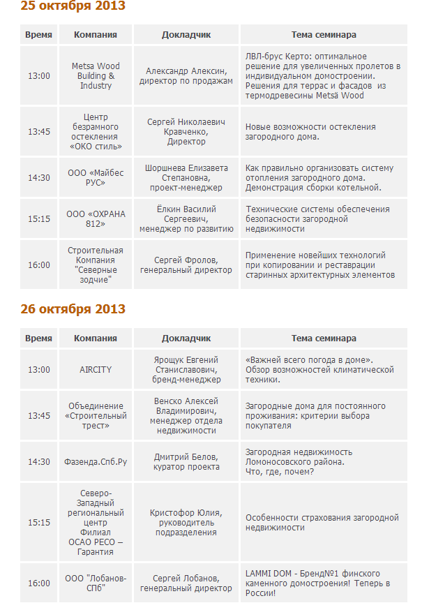 В рамках выставки DOM SHOW Недвижимость и Строительство, которая пройдет 25 - 26 октября 2013 в ВЦ "Ленэкспо" будет проводиться двухдневная деловая программа. Семинары проведут ведущие компании, работающие на рынке строительства, продажи и обустройства загородных домов. Выступления будут предназначены для конечных потребителей - частных лиц, которые планируют покупку готового коттеджа или выбирают технологии строительства, строительную компанию.