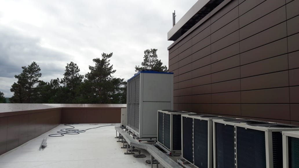 На объекте выполнены поставка и установка следующего оборудования: компрессорно-конденсаторный блок Zeta Rev LE 14.4 (140 кВт).