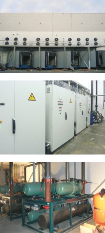 • изготовление и монтаж центрального холодильного центра с системой «фрикулинг» для охлаждения промежуточного хладоносителя холодильной мощностью 1020 кВт, с системой удаленного управления и мониторинга посредством встроенного GSM-модема;