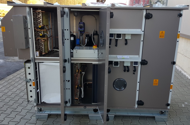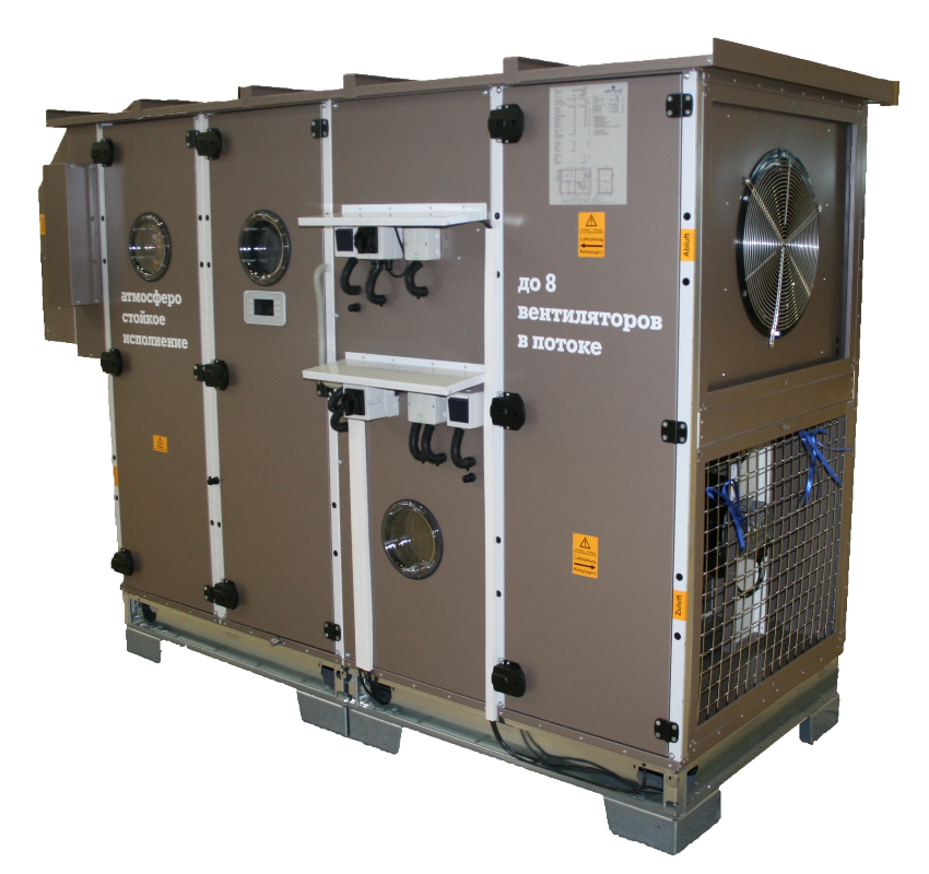 - Экономическая выгода: Цена центрального кондиционера со встроенной холодильной установкой ниже суммарной стоимости центрального кондиционера, ККБ, опорной конструкции под ККБ, проектирования и монтажа трубопроводов, кабелей, монтажных работ, опрессовки, заправки хладагентом, дозаправки масла, увязки автоматики ККБ и центрального кондиционера, настройки и т.п.