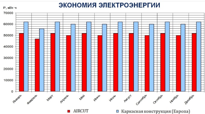 Сокращение потребления электрической энергии при применении установок «Аиркат» составило за год 121 150 кВт·ч (16,6%). Для сравнения на рис. 6 приведено расчетное месячное потребление электрической энергии для двух установок.