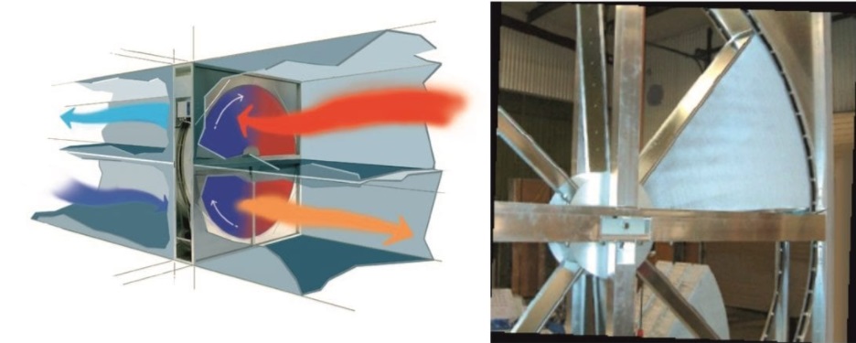 Во вращающихся регенераторах передача теплоты обеспечивается за счет постоянного вращения теплоаккумулирующего ротора, извлекающего теплоту более нагретого воздуха и отдающего её холодному воздуху.
