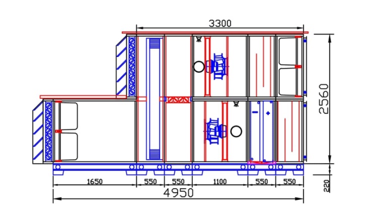 Рисунок 3. (Схема бескаркасной приточно-вытяжной установки Aircut с роторным рекуператором)