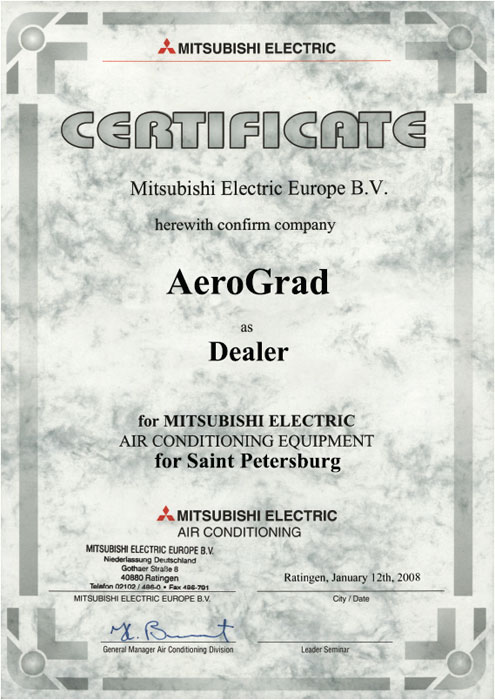 Дилерский сертификат Mitsubishi Electric