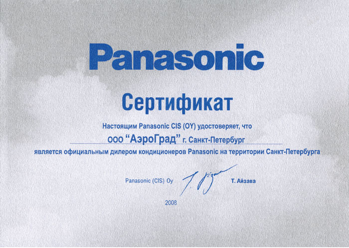 Дилерский сертификат Panasonic