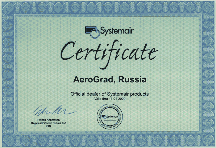 Дилерский сертификат System Air