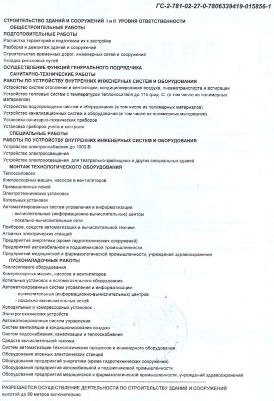 Строительство зданий и сооружений I и II уровней ответственности