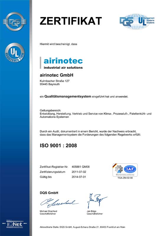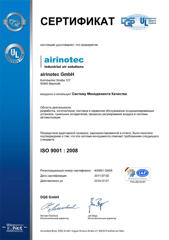 Сертификат менеджмента качества, немецкий язык.