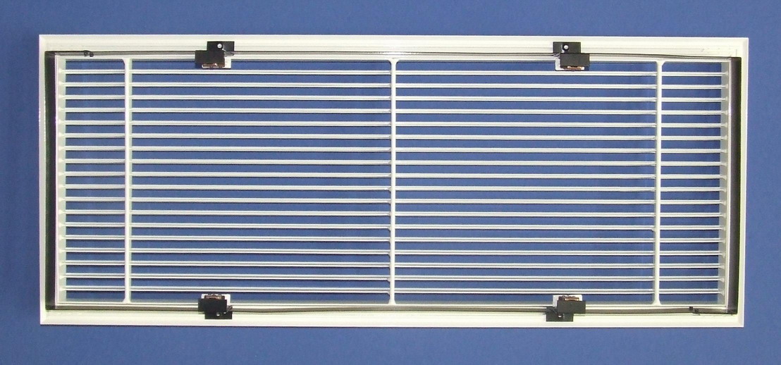 Решетки любого веса надежно фиксируются на потолке быстросъемными фиксаторами без применения дополнительног инструмента. Усилие удержания решетки регулируется количеством установленных фиксаторов. В отличие от пружинных защелок старого типа, предлагаемых для крепления в стены, новый тип фиксаторов обеспечивает прижим решетки к потолку и исключает зазоры крепления.