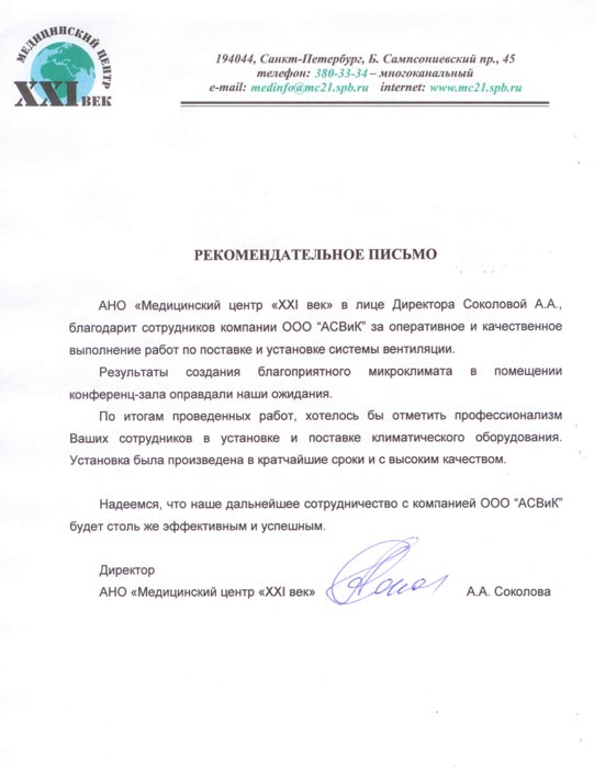 По итогам проведенных работ, хотелось бы отметить профессионализм Ваших сотрудников в установке и поставке климатического оборудования. Установка была произведена в кратчайшие сроки и с высоким качеством.