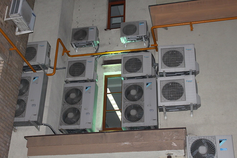 Вся система включала в себя внешние блоки, мульти сплит-систему, комплектующие и расходные материалы. Установили 2 внешних блока воздушного охлаждения. Выполнили монтаж 12 настенных сплит-систем.