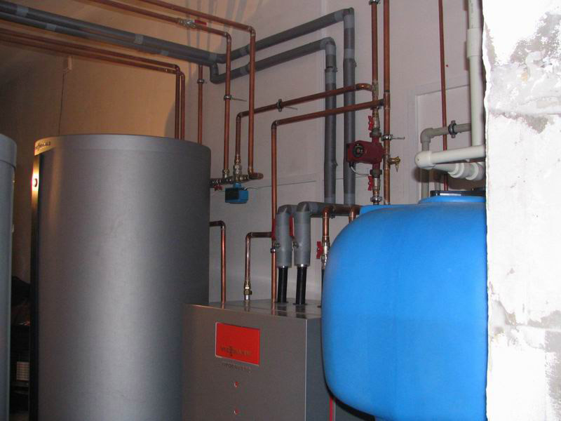 Геотермальный тепловой насос с твердотопливным котлом для отопления загородного дома.