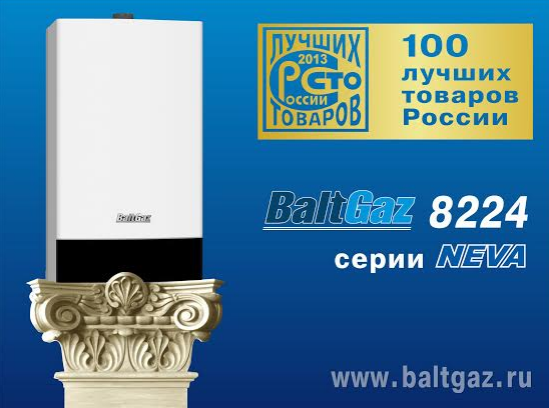 Победителем в номинации «Промышленные товары для населения» признан газовый настенный двухконтурный котел NEVALUX-8224. Главными преимуществами данного котла являются поддержание заданной температуры в контурах отопления и водоснабжения до ±1°С, наличие вторичного пластинчатого теплообменника из нержавеющей стали и медного теплообменника для контура отопления, а также устойчивая работа аппарата при низком давлении воды. Срок эксплуатации котла более 12 лет, котел обладает высокой энергоэффективностью (КПД составляет 92,5 %).