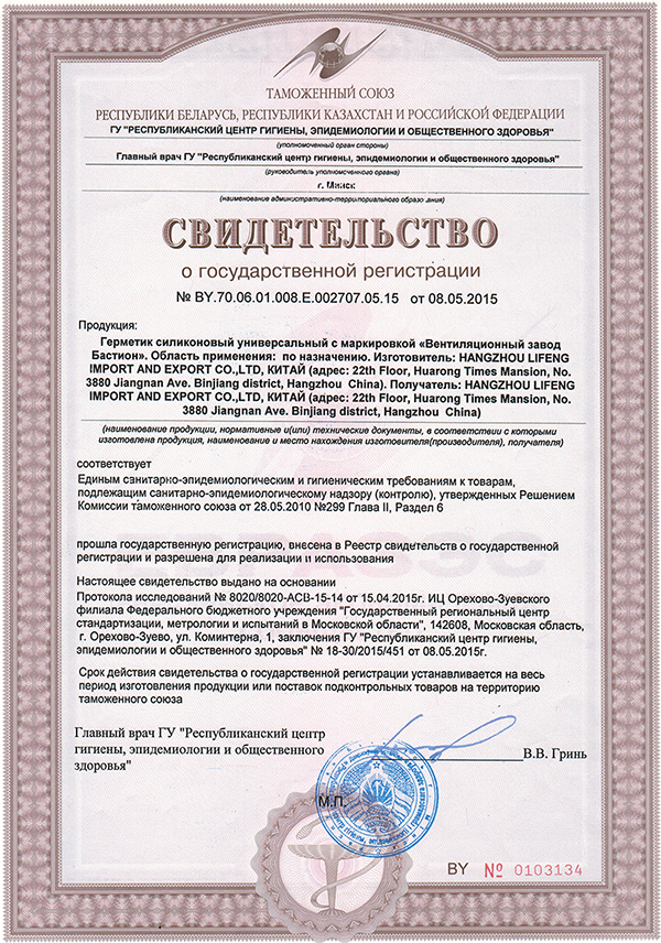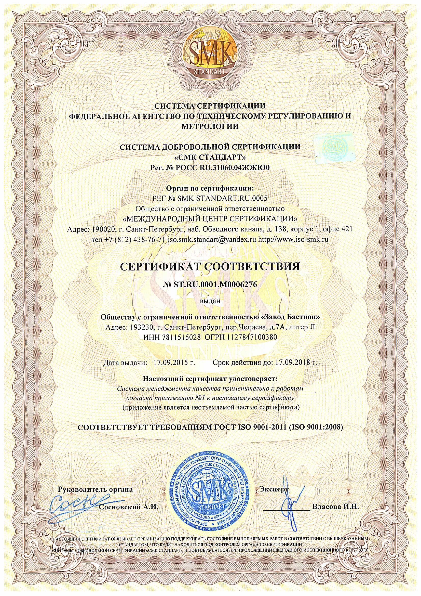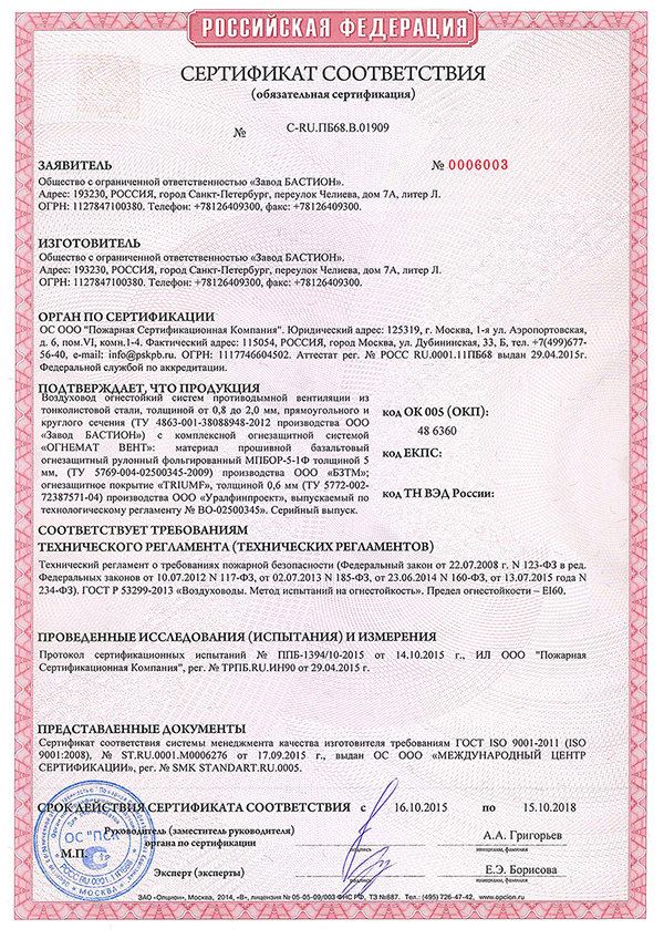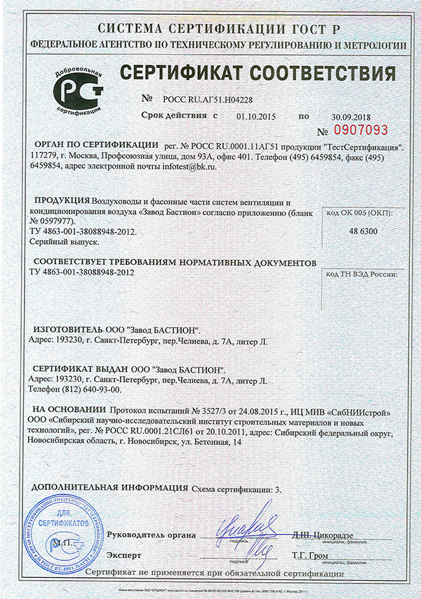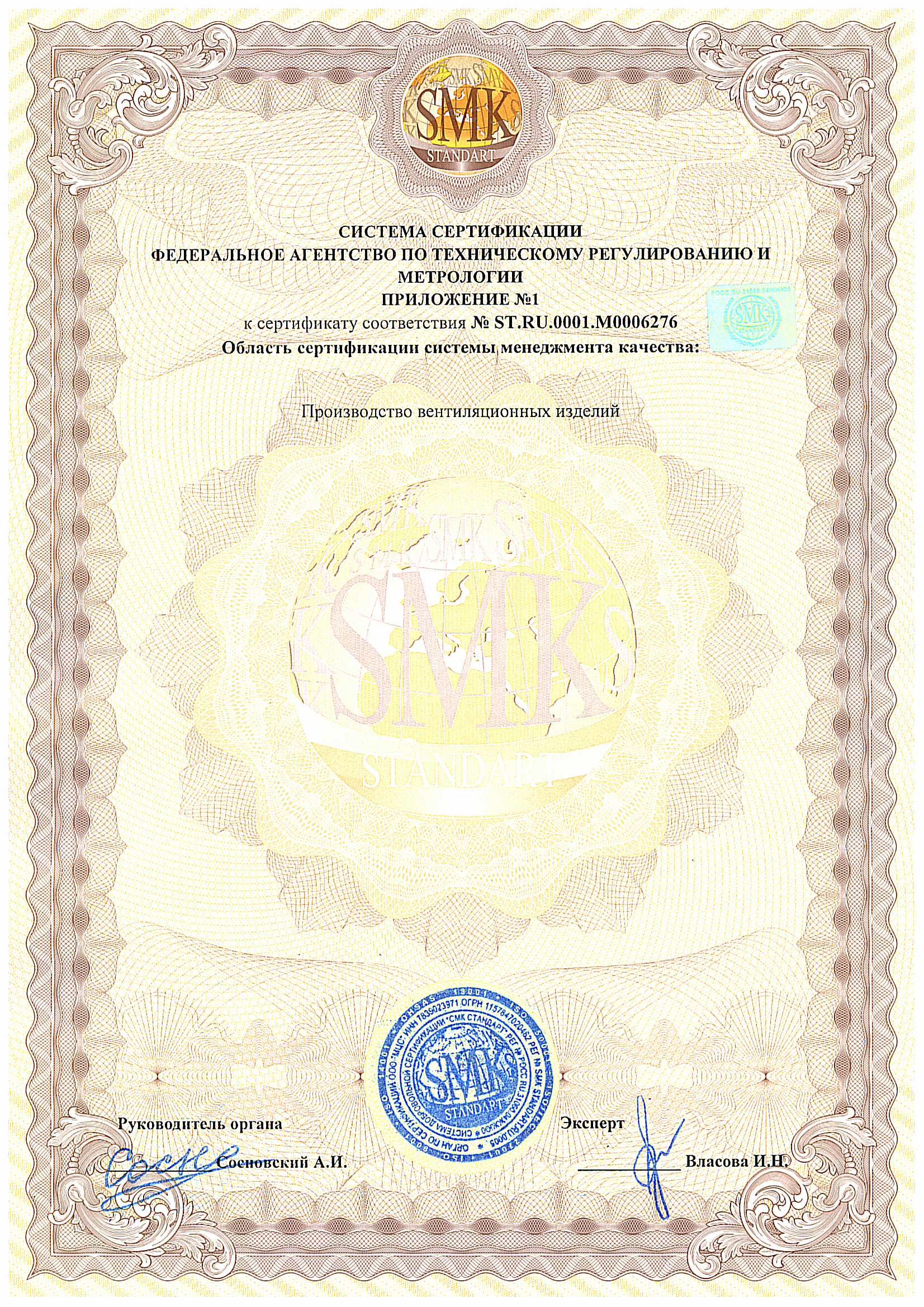 Лицензии и сертификаты компании Вентиляционный завод Бастион