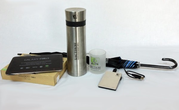 В рамках бесплатной лотереи Завод Бастион предоставит 2 специальных приза – планшетные компьютеры Samsung. А также различные сувениры, среди которых стильный зонт, внешний жесткий диск, практичный термос.