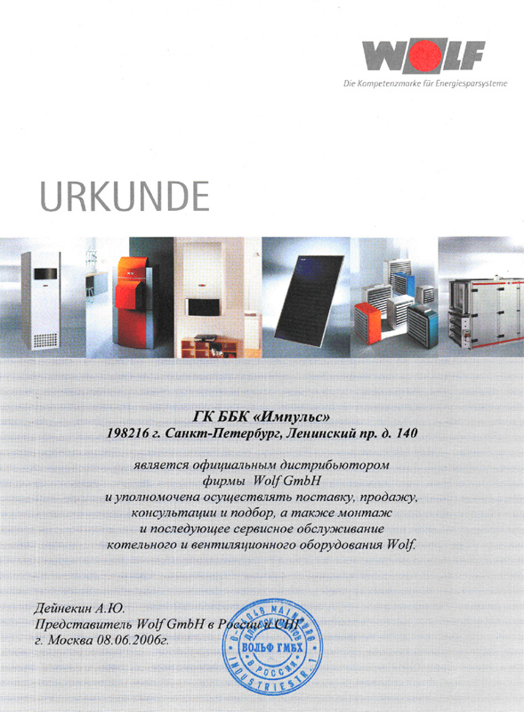 Сертификат дистрибьютора WOLF