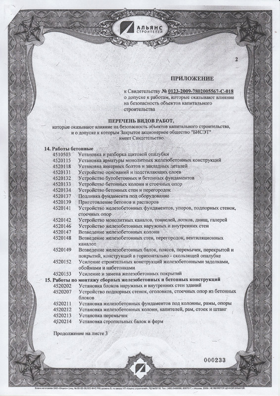 - Допуск СРО к строительным работам, оказывающим влияние на безопасность объектов капитального строительства, прил. 2