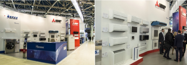 Системы кондиционирования Mitsubishi Electric были представлены бытовыми системами М- серии, полупромышленными кондиционерами Mr.SLIM, мультизональными VRF-системами, приточно-вытяжными установки LOSSNAY. На отдельной промозоне посетители могли увидеть кондиционеры серии Design в новом дизайне.