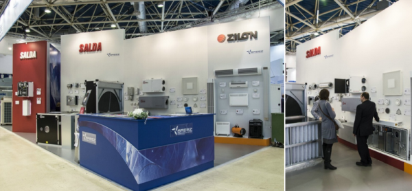 Европейское вентиляционное оборудование SALDA было представлено во всем своем многообразии: канальные и крышные вентиляторы, компактные приточные установки, установки с рекуперацией тепла, канальные нагреватели и охладители, элементы автоматики. Среди новинок - суперкомпактная (200х260х650 мм!) вентиляционная установка VEKA 350 EC c расходом воздуха 350 м3/час. Добиться таких габаритов позволило применение самых последних разработок в области аэродинамики, новейшего EC двигателя и самого современного рабочего колеса. На сегодняшний день данная модель является самым идеальным решением для вентиляции квартир, апартаментов, коттеджей. Также частью экспозиции стала каркасно-панельная приточно-вытяжная установка SALDA SmartAir c роторным регенератором. Установка выполнена в варианте с дополнительной покраской панелей корпуса в черный цвет, установленными смотровыми окнами и подсветкой вентиляторной секции и секции фильтра. Отдельно был продемонстрирован новый корпус из профиля 50+ с термическим разделителем и изоляцией панелей из пенополиуретана, позволяющий изготавливать установки в гигиеническом исполнении. Каркасно-панельные установки SALDA SmartAir сертифицированы EUROVENT.