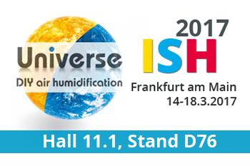 Оборудование Universe на выставке ISH 2017 с 14 по 18 марта 2017 годаС 14 по 18 марта 2017, во Франкфурте-на-Майне, в Германии компания Universe представит систему увлажнения воздуха Universe – DIY humidification.