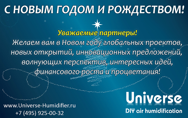 Специально для вас в новогодние праздники наш демонстрационный зал с системами увлажнения воздуха продолжает свою работу. Для посещения демонстрационного зала необходимо заранее договориться о встрече по контактному телефону +7 (495) 925-00-32.