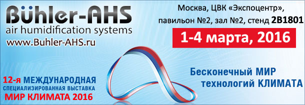 Компания Buhler-AHS Russia приглашает Вас посетить 12-ю Международную специализированную выставку «Мир Климата 2016», которая пройдёт в Москве с 1 по 4 марта 2016 года.