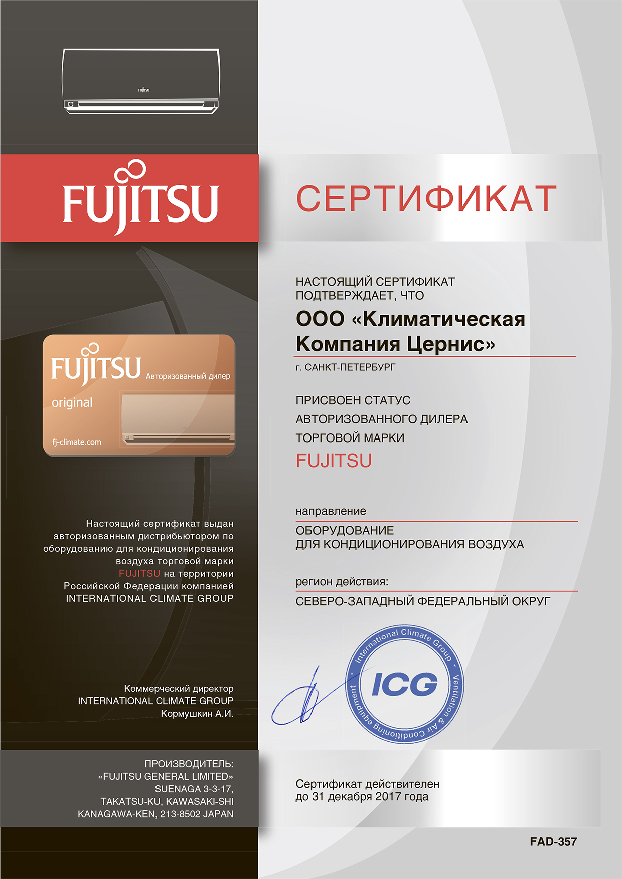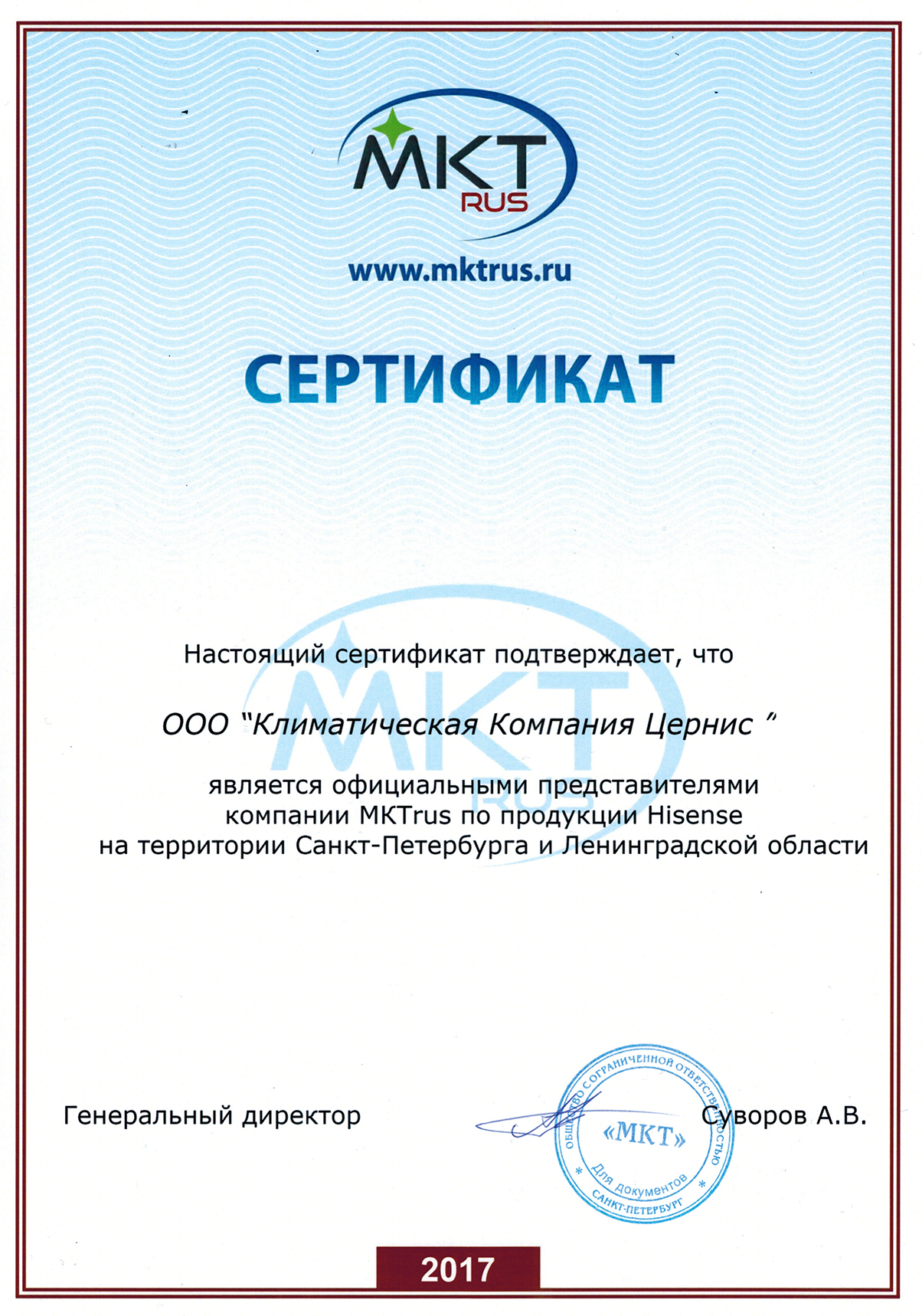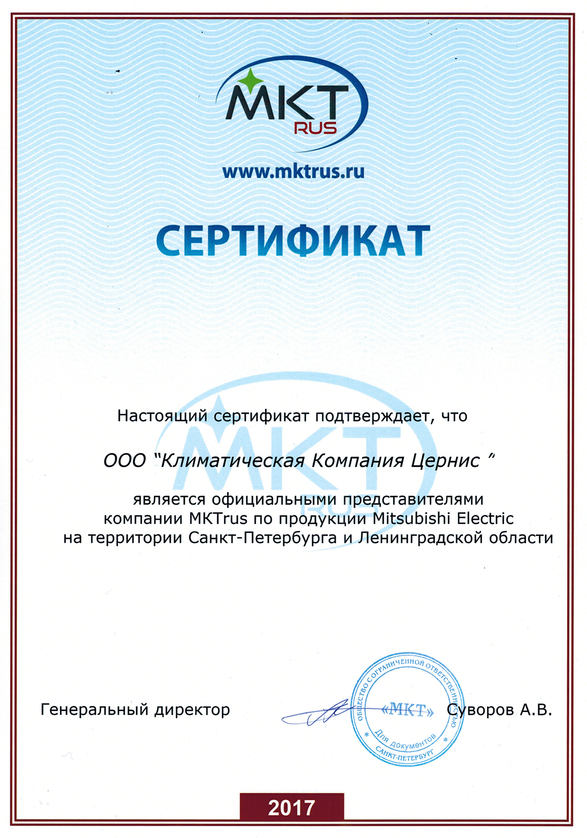 Сертификат официального представителя по продукции Mitsubishi Electric