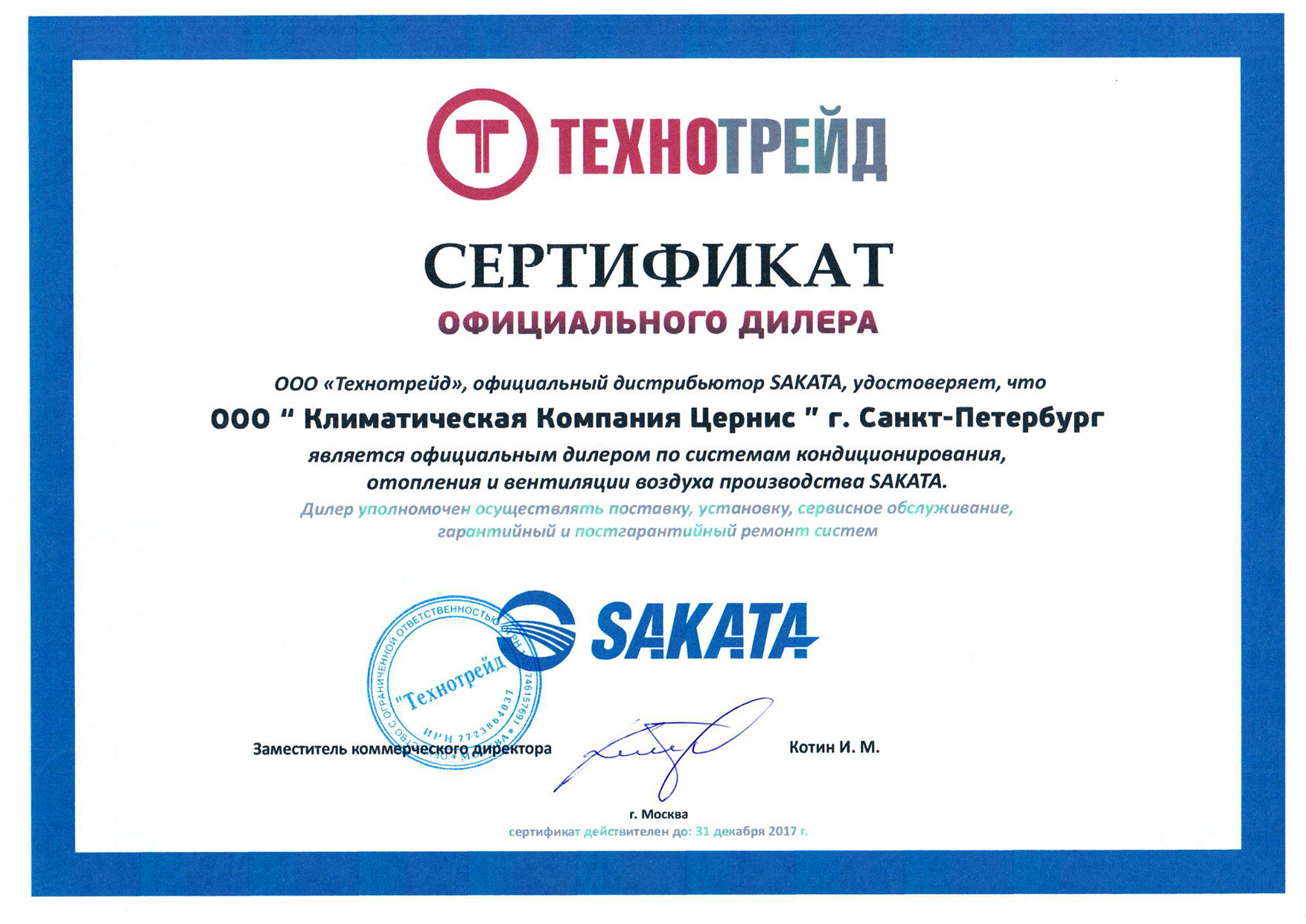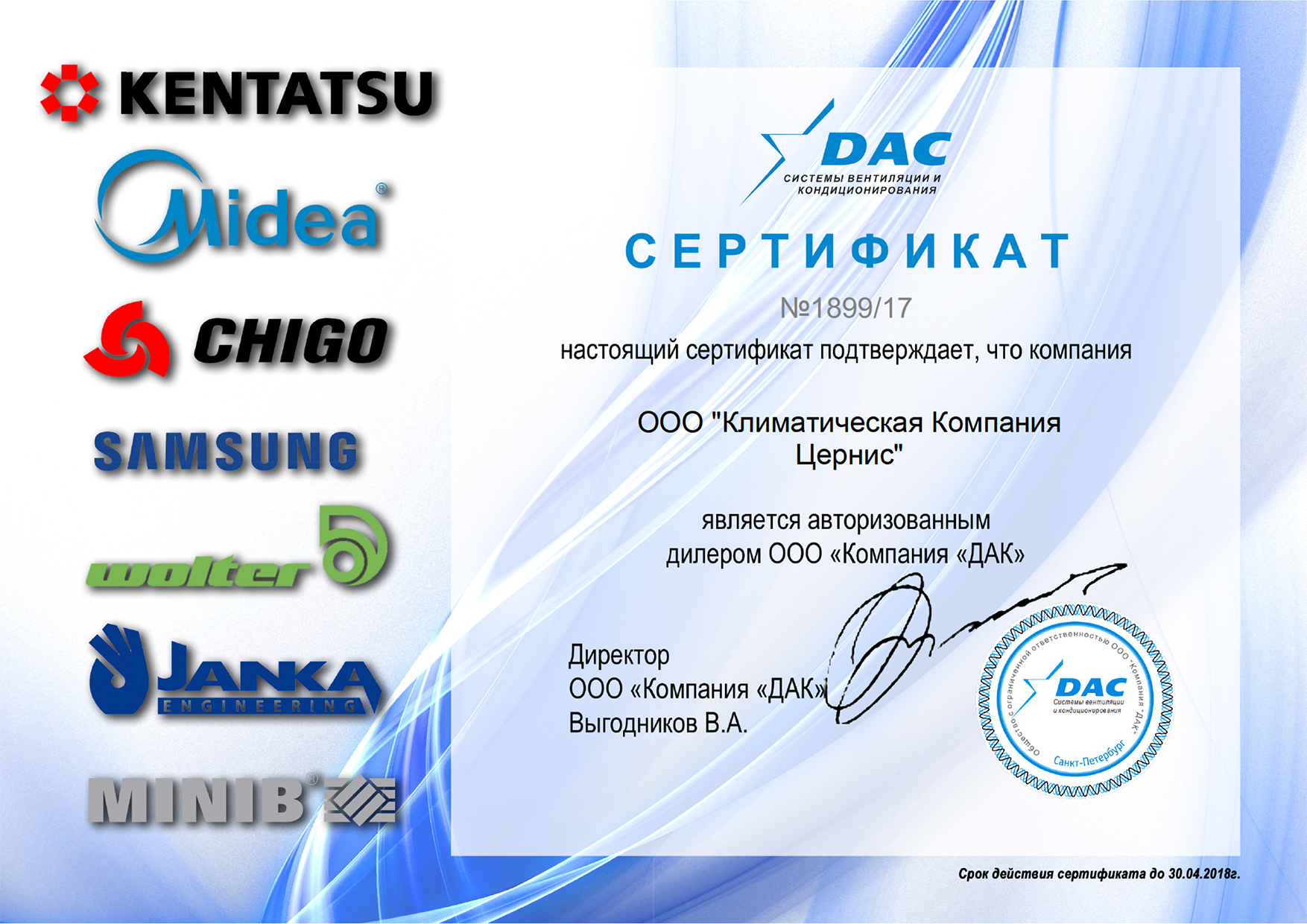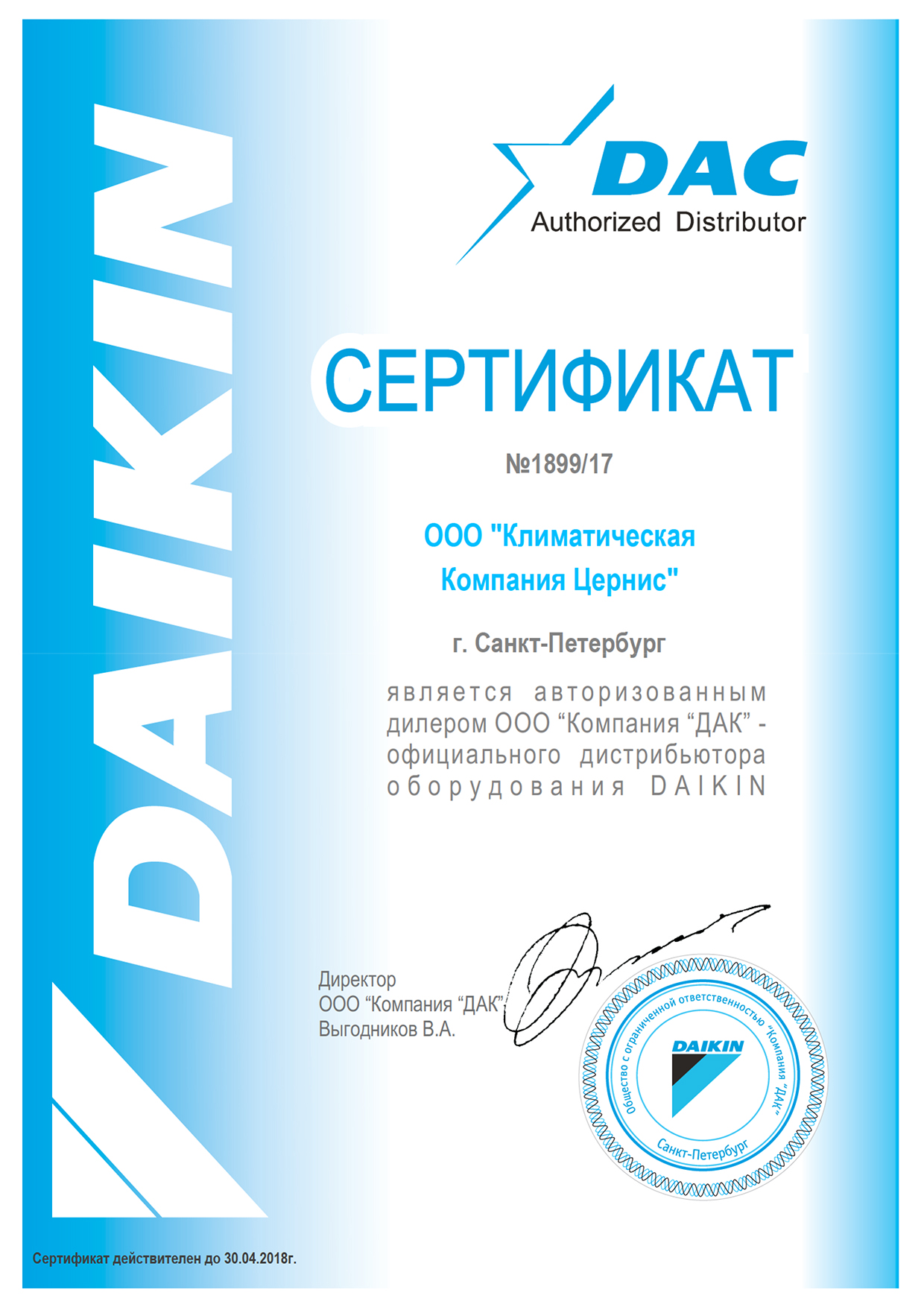 Сертификат официального представителя по продукции Mitsubishi Electric