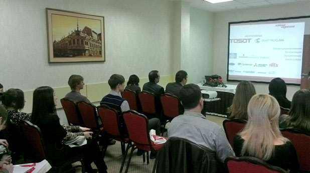 Новый весенний цикл информационно-обучающих семинаров прошел для компаний-партнёров из различных регионов России с февраля по апрель 2013 года в «КЛИМАТ КОМПАНИ». Лекции для менеджеров по продажам и для специалистов монтажных организаций проводились в Краснодаре, Ростове-на-Дону, Санкт-Петербурге, Уфе, Екатеринбурге, Перми, Казани и Новосибирске.