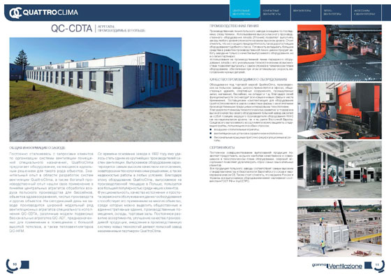 В новом каталоге существенно расширен информационный раздел о центральных вентиляционных агрегатах. Помимо развернутой технической информации об оборудовании, в каталоге впервые представлено детальное описание производственных площадок QuattroClima.