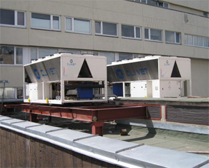 Подготовка холодной воды для систем вентиляции и кондиционирования воздуха осуществляется с помощью высокоэффективных чиллеров наружного исполнения WSAT-XSC2. Данные холодильные машины оборудованы системами для свободного охлаждения в межсезонье (Freecooling). Холодильные машины WSAT-XSC2 обладают высоким показателем холодильного и межсезонного коэффициента EERи ESEER, что позволяет эффективно использовать потребляемую электроэнергию в течение всего сезона кондиционирования.