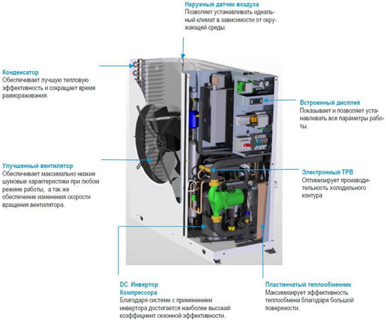 ELFOEnergy Extended Инвертер был разработан с использованием технологии инвертора постоянного тока, примененная к системе компрессора и циркуляционных насосов (опционально), термостатической электроники и пластинчатого теплообменника с большой поверхностью теплообмена.