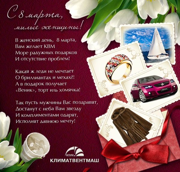 Милые женщины! ПО КЛИМАТВЕНТМАШ поздравляет Вас с праздником весныМилые женщины! Производственное объединение КЛИМАТВЕНТМАШ поздравляет Вас с праздником весны, с 8 марта!