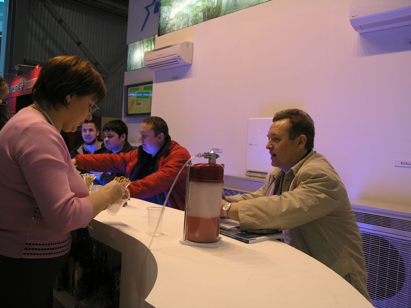 Наш стенд находился в 7 павильоне выставочного комплекса ЛенЭкспо, где были представлены все новинки кондиционеров DAIKIN. Всем гостям предлагали различные угощения, в том числе кислородный коктейль.