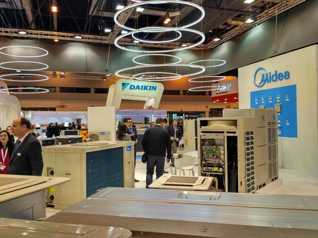 Участники выставки на стенде компании смогли ознакомиться c сплит-системами, полупромышленными и промышленными кондиционерами Midea. Отдельно были представлены VRF-системы нового поколения Midea, V6.