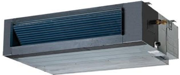 Вентилятор внутреннего блока нового канального кондиционера развивает внешнее статическое давление до 100 Па. Этого достаточно для организации системы воздуховодов длиной несколько десятков метров. Внутренние блоки небольшой высоты (249 мм) могут монтироваться за потолком внутри обслуживаемого помещения или вне его.