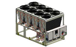 Чиллеры имеют до 6 компрессоров и V-образные микроканальные конденсаторы одно- или двухконтурной конструкции.