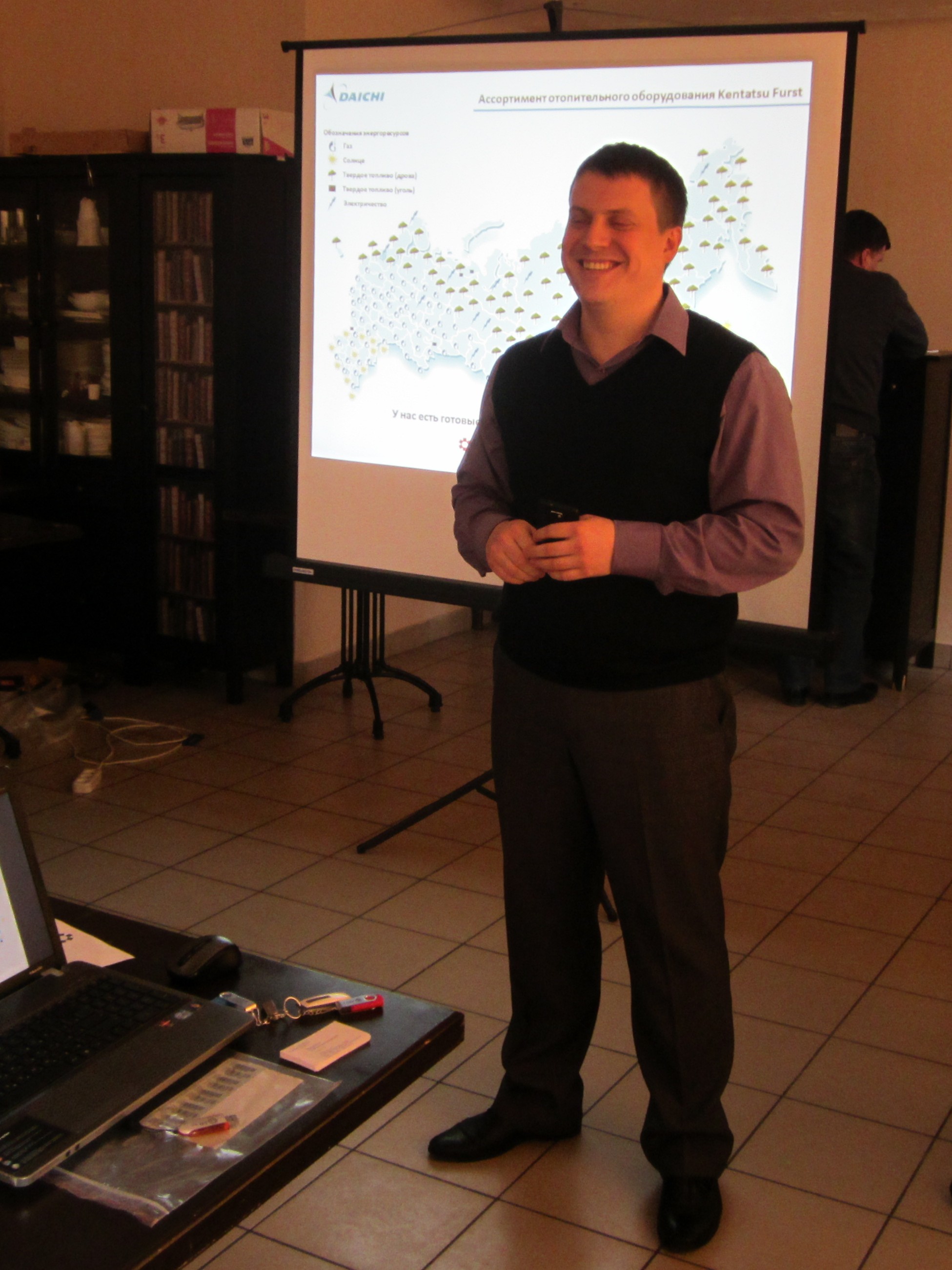 Сергей Макаренко, руководитель проектов отдела инженерно-технической подготовки «Даичи», познакомил гостей семинара с маркой Kentatsu Furst, рассказал о технических особенностях и модельных рядах представляемого компанией теплового оборудования, в том числе напольных газовых, чугунных и стальных твердотопливных котлов, наддувных горелок и радиаторов отопления. Кроме того, дал рекомендации по их монтажу и эксплуатации. По окончанию семинара слушателям были вручены именные сертификаты о пройденном обучении.
