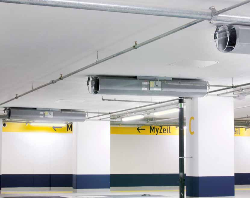 Струйная вентиляция Wolter JET FAN на подземной автостоянке торгового центра во Франкфурте-на-Майне