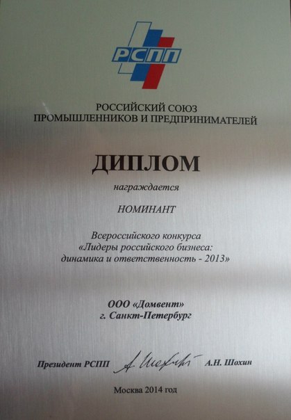 13) Диплом номинанта Всероссийского конкурса «Лидеры российского бизнеса: динамика и ответственность - 2013».