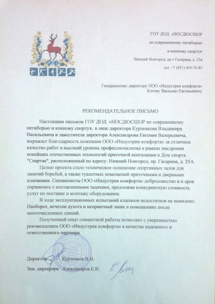 7) Рекомендательное письмо от ГОУ ДОТ «НОУДЮСШОР по современному пятиборью и конному спорту».