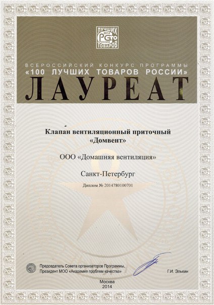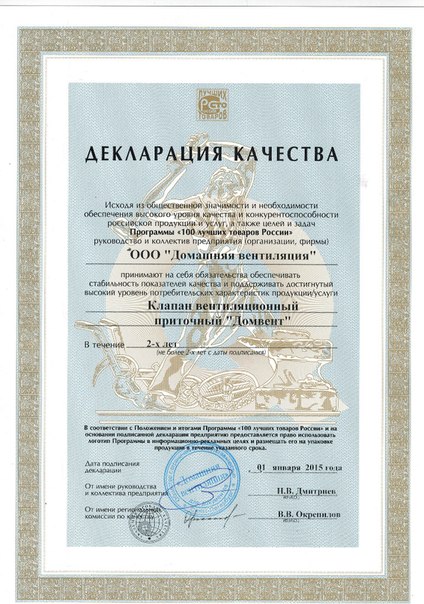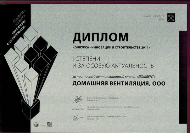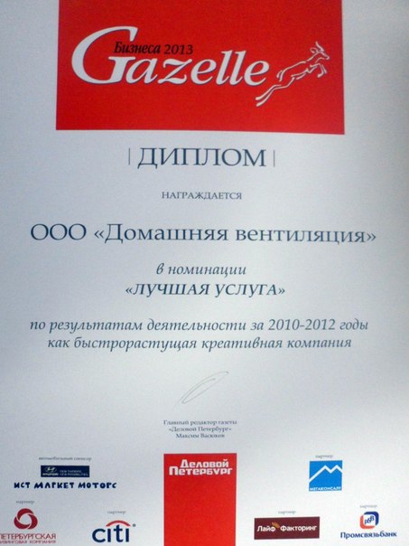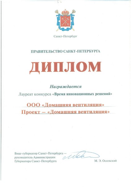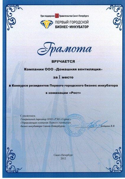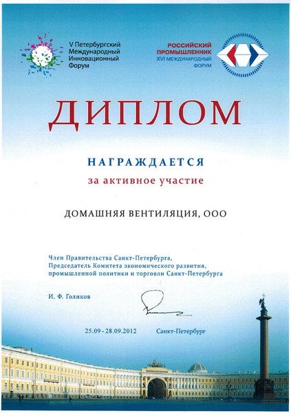 Дипломы и благодарственные письма компании Домашняя вентиляция