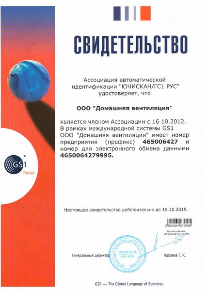 11) Свидетельство о членстве от Ассоциации автоматической идентификации «ЮНИСКАН/ГС1 РУС».
