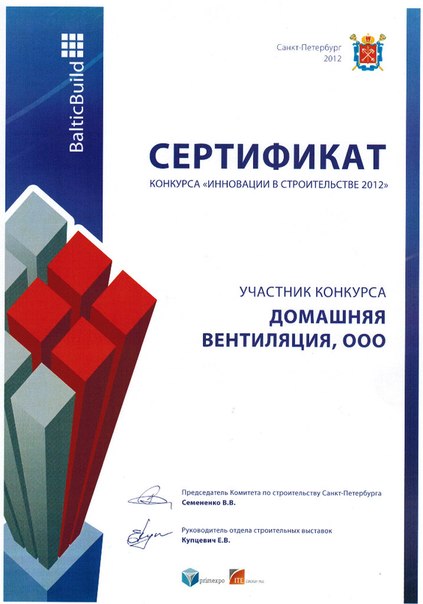 14) Сертификат конкурса «Инновации в строительстве 2012».