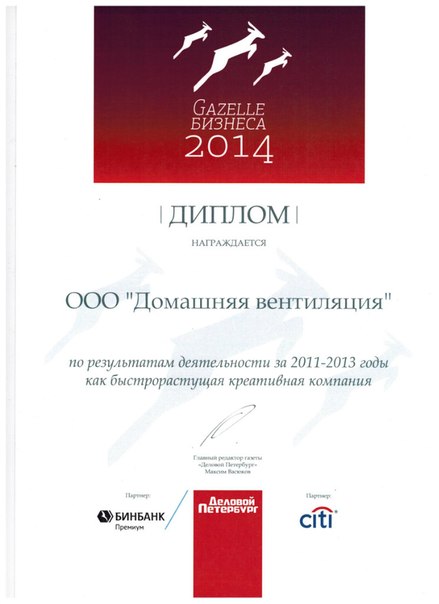 5) Диплом конкурса «Gazelle бизнеса 2014».